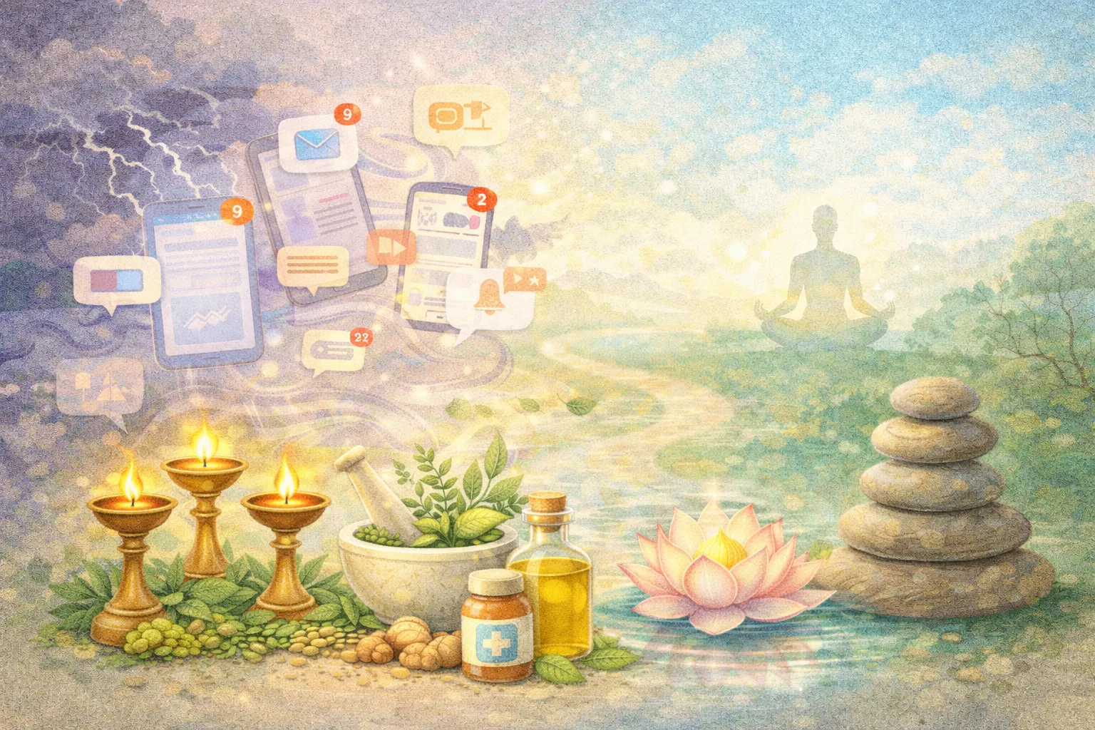 O excesso de informações, estímulos e responsabilidades impacta diretamente a mente, gerando ansiedade, inquietação e desequilíbrio emocional. O Ayurveda compreende a mente como parte essencial da saúde integral e oferece caminhos profundos para restaurar sua estabilidade natural.