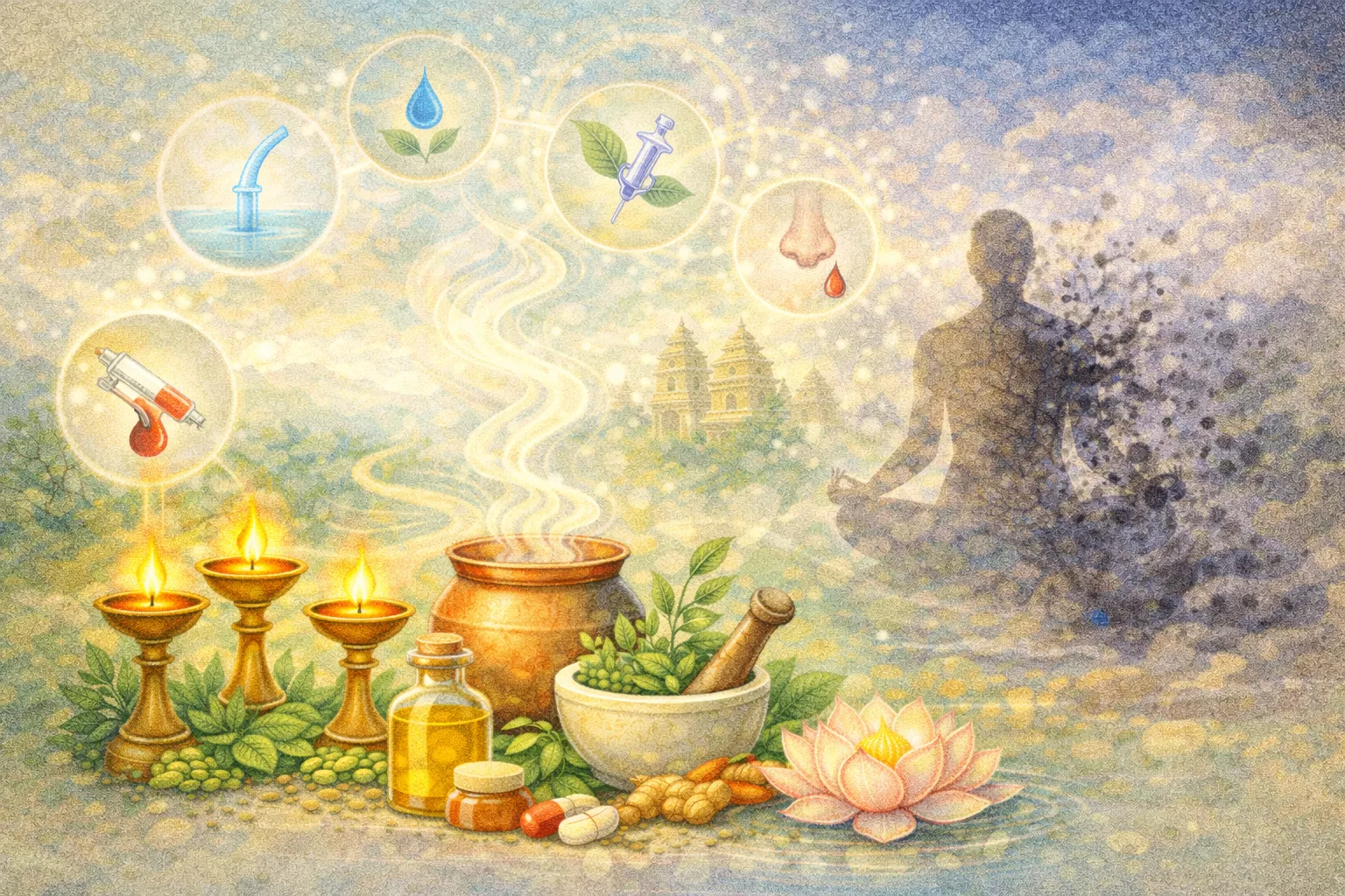 O Ayurveda compreende a doença como um processo gradual de desequilíbrio, que pode ser interrompido e revertido quando tratado de forma adequada. Shodhana, as terapias de purificação, ocupa um papel central nesse manejo.